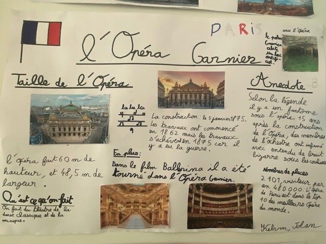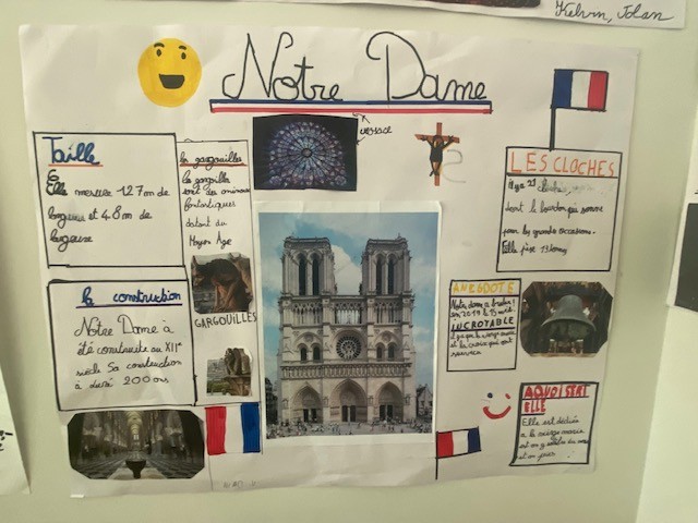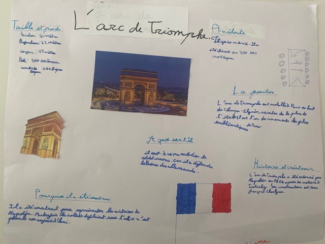 La Tour Eiffel, Notre-Dame, Arc de Triomphe ou encore l’Opéra Garnier… chaque groupe a su mettre en valeur un lieu emblématique, en apportant des informations historiques, culturelles et parfois même des anecdotes surprenantes. Ces présentations ont permis de prolonger le voyage en classe, tout en développant les compétences d’expression orale et de recherche.