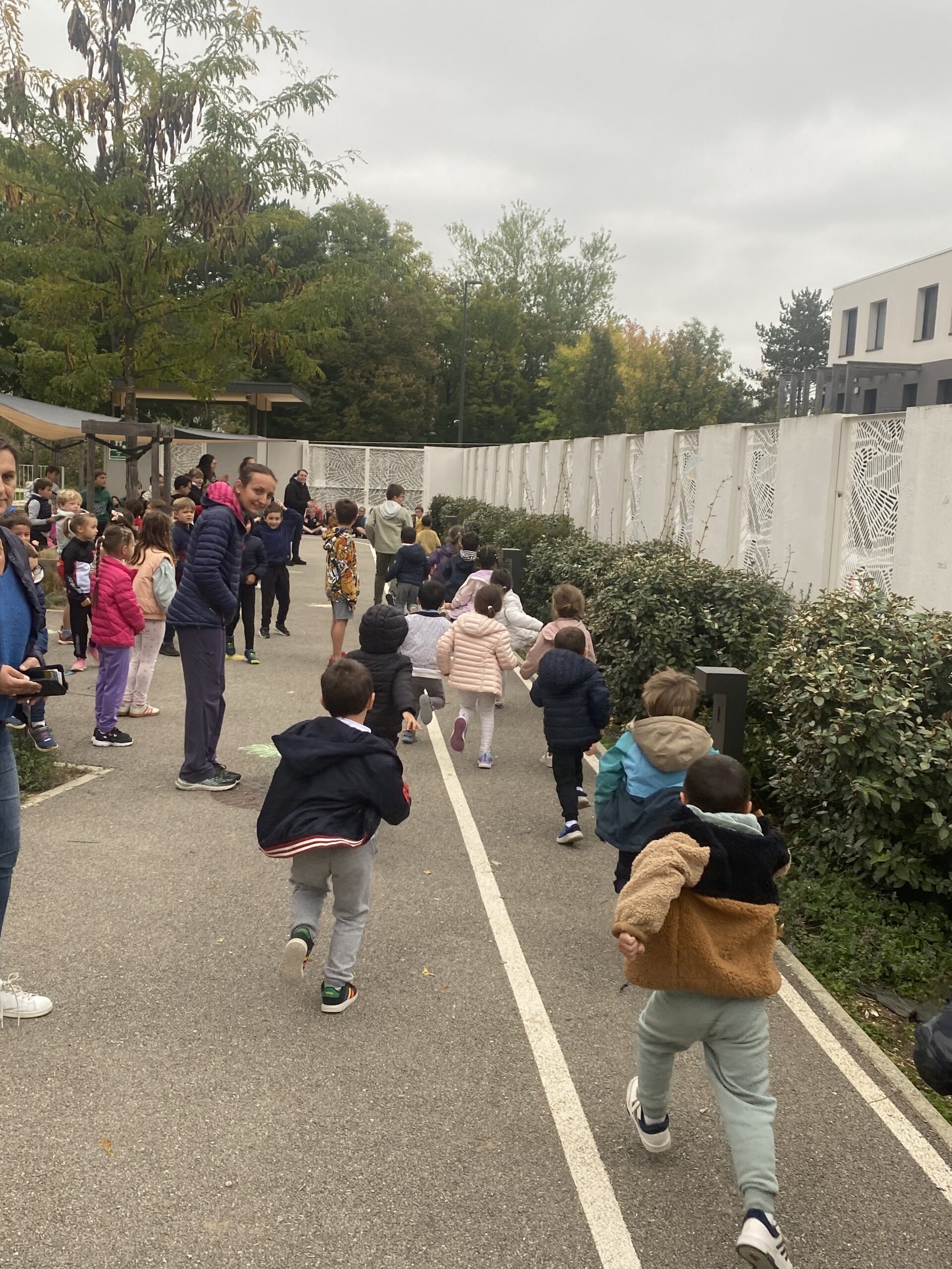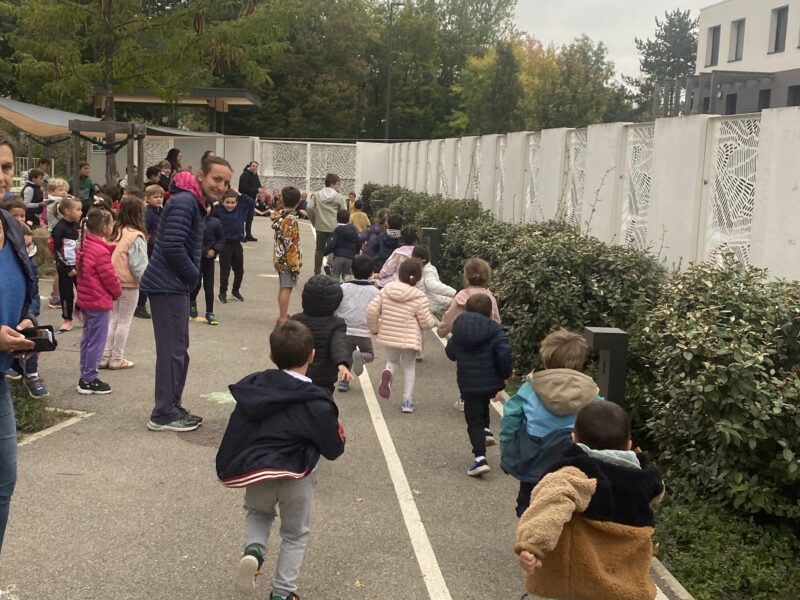 Le matin, les enfants de TPS à la Grande section avaient couru dans la cour de l’école, encouragés par leur camarades d’élémentaire.